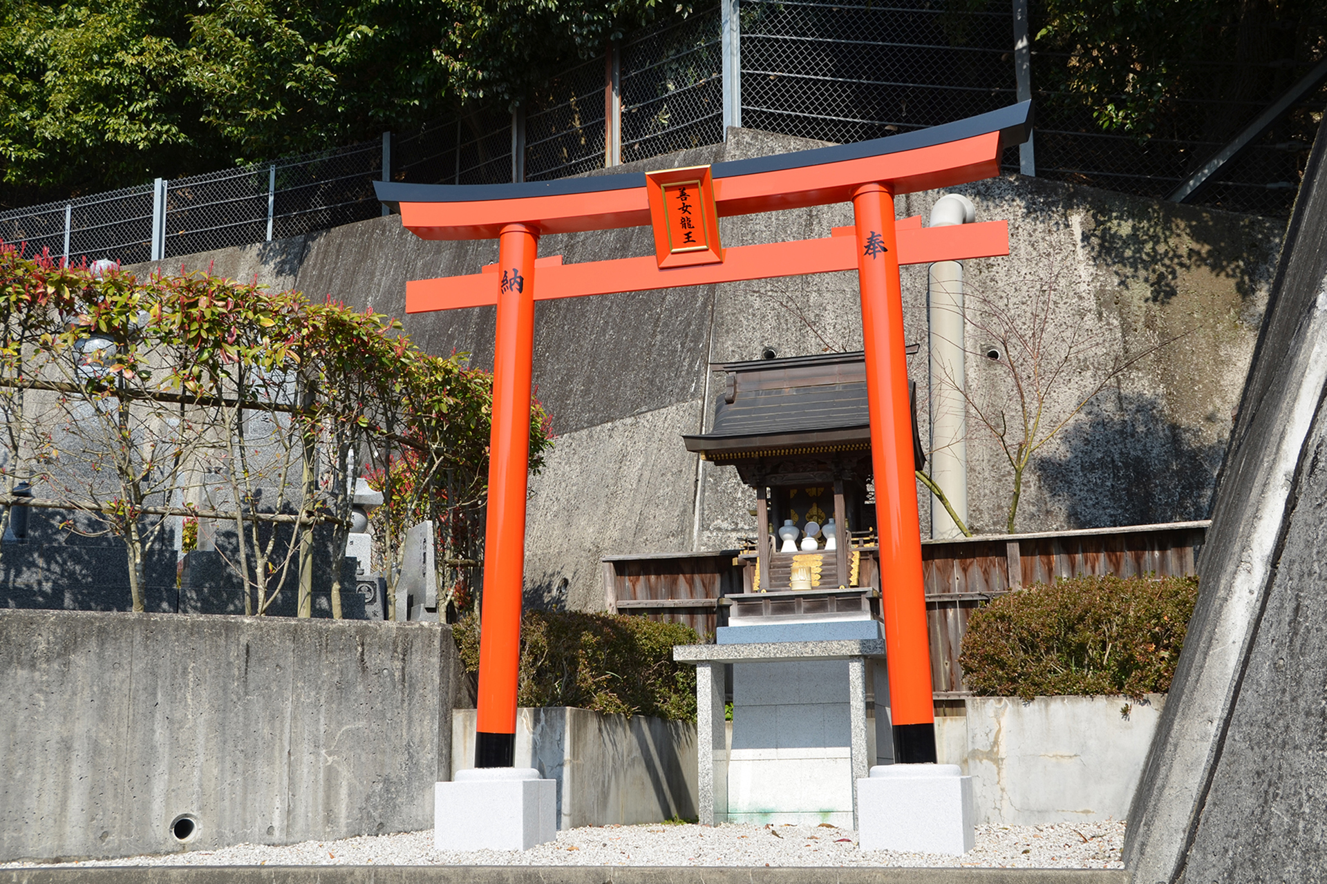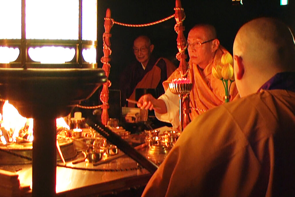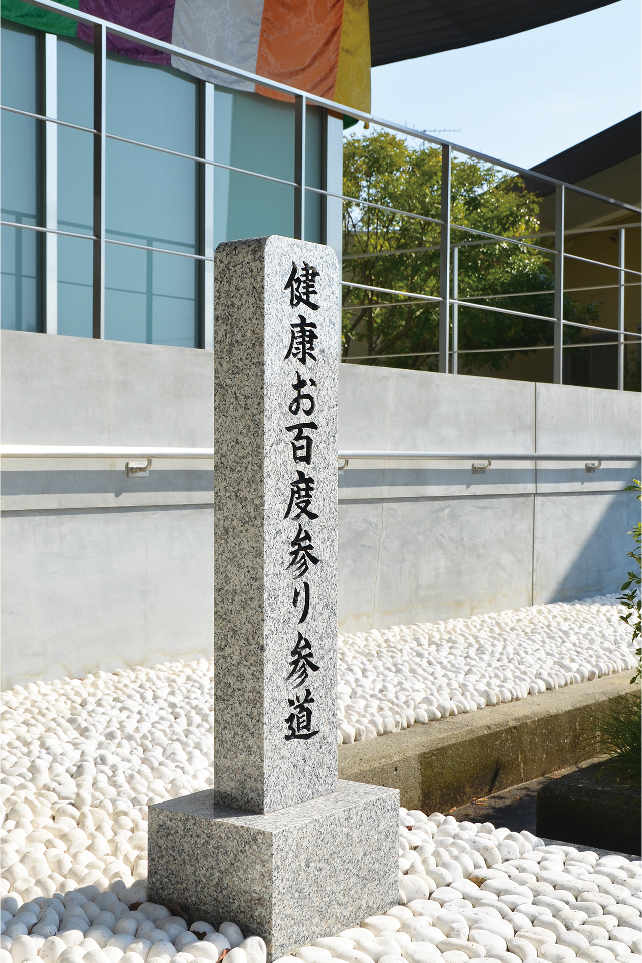 本 堂 側壁は総ガラス張りで空中に浮かぶお浄土をイメージされており、優美な大屋根と相まって全国でも類をみない美しく、近代的かつ重厚な姿となっています。御堂内には大変歴史のある金剛界・胎蔵界の曼荼羅が祀られており、また永代供養のための法燈が灯され、檀信徒の願いを叶えてくれる身代り千躰大師が奉納されています。 護 摩 堂 本堂内より石畳の階段を下りると目にも眩しい 光床ひかりゆか が現れます。地下にある護摩堂は大変珍しく幻想的です。ご本尊は五大明王で中央に鎮座する不動明王、東方が降三世明王、南方が軍荼利明王、西方が大威徳明王、北方が金剛夜叉明王。いずれも憤怒の形相で圧倒的な存在感がお参りする方々を必ず助け上げて幸福にするぞと迎えてくださいます。一月の初護摩、二月の節分会(星供)に護摩炊きを行います。 龍 神 当山の北東には龍神様が祀られています。お寺の建設にあたり、当地の神様をお祀りすることと鬼門を封じるため、この場所に祀られています。 健康お百度参り お百度参りは、願いを叶えてもらおうとする仏様や神様に、百回お参りして祈願することです。お百度は修行の一つで、精神を集中させ雑念を持たず、一心に祈りながら参ることで仏様からのご加護が得られます。また、足は第二の心臓と呼ばれており、足裏も全身に刺激を与えて健康を維持しているといわれています。当山の健康お百度参りは白石を敷きつめてありますので、ぜひお試しください。 会 館 ご参拝の休憩所として会館を開放しています。 駐 車 場 地下に21台駐車可能です。バリアフリーで、本堂、護摩堂、境内墓地へはエレベーターとスロープでお参りいただけます。きれいに清掃されたトイレもバリアフリーでご利用いただけます。
